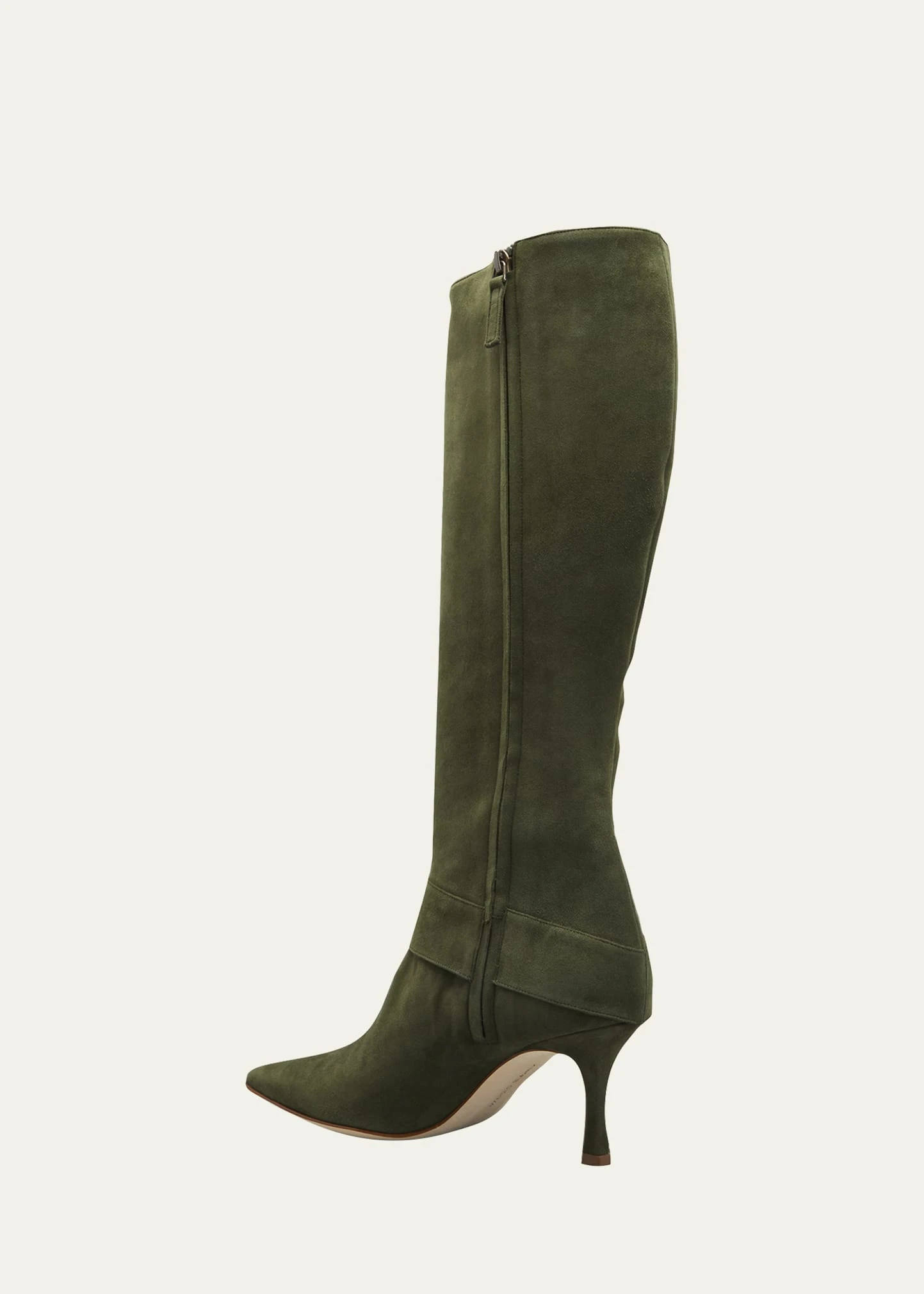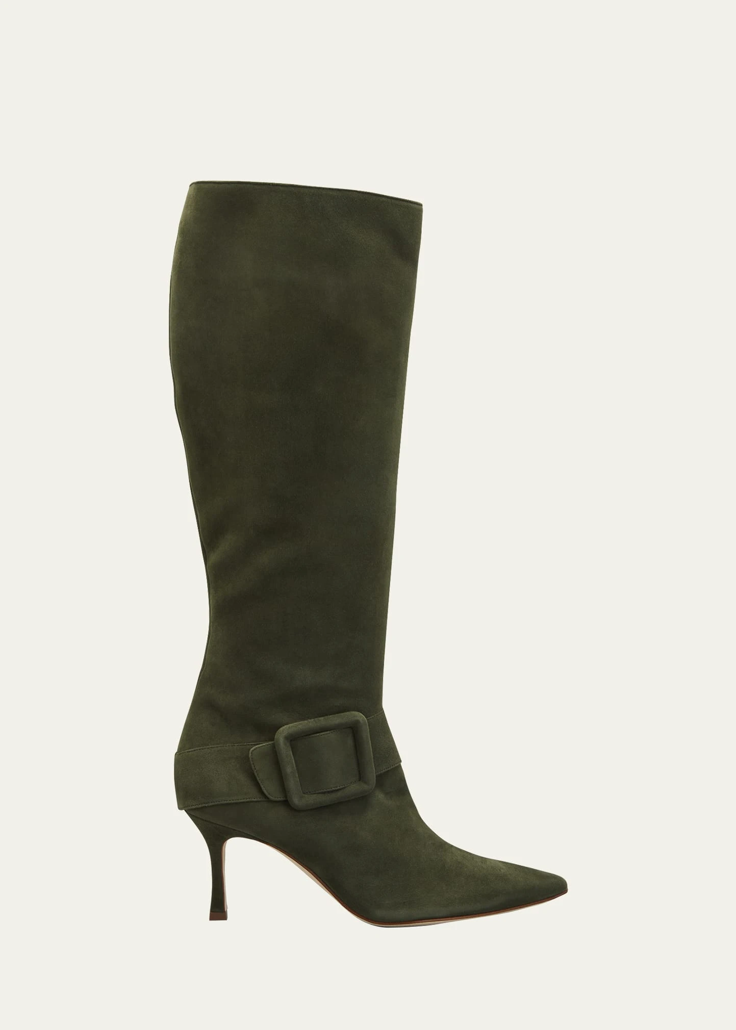 Manolo Blahnik BAYHI SUEDE BUCKLE MID BOOTS