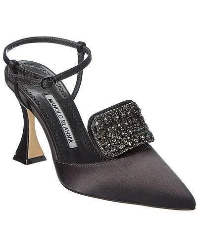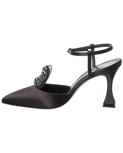 - Cardella 90 Satin Pump in black satin and silver-tone hardware with crystal embellishments