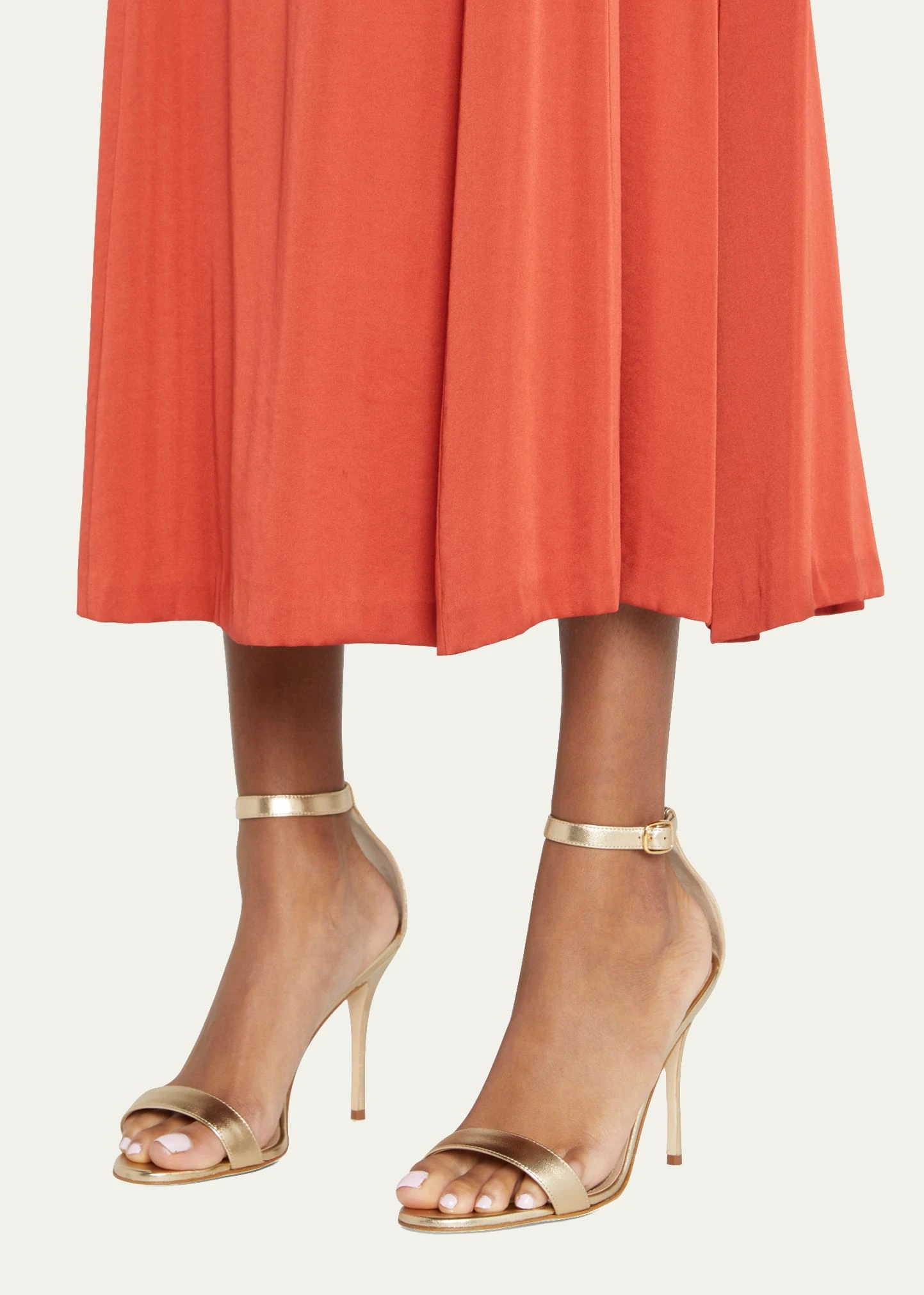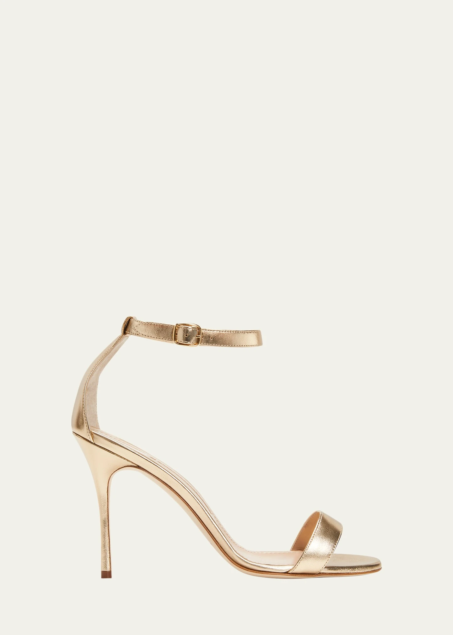 Manolo Blahnik CHAOS METALLIC ANKLE-STRAP STILETTO SANDALS