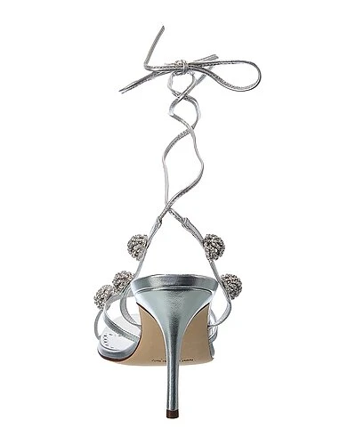 - Elsaka 90 Leather Sandal in silver leather and silver-tone hardware with crystal-embellished bobbles