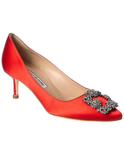 - Hangisi 50 Satin Pump in red satin and silver-tone hardware with crystal-embellished buckle