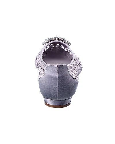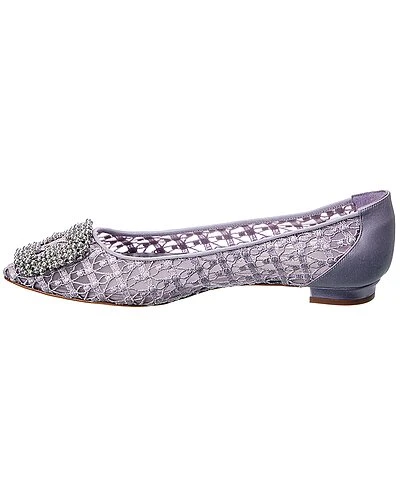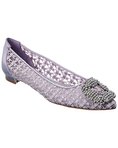 - Hangisi Lace Flat in purple lace and silver-tone hardware with pearl-embellished buckle