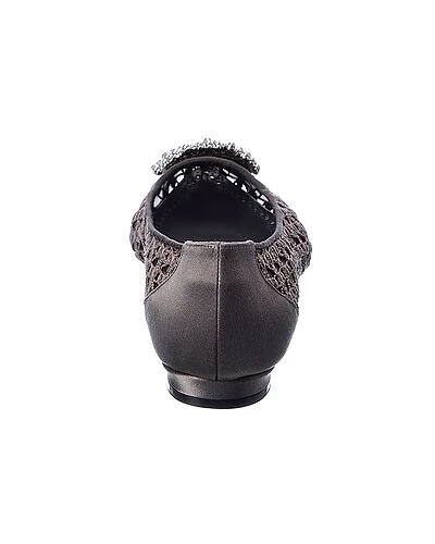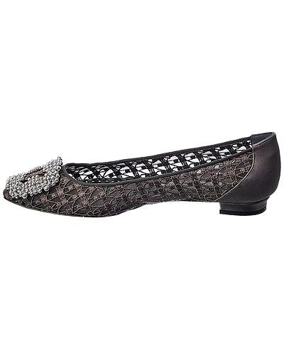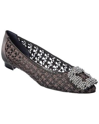 - Hangisi Lace Flat in grey lace and silver-tone hardware with pearl-embellished buckle