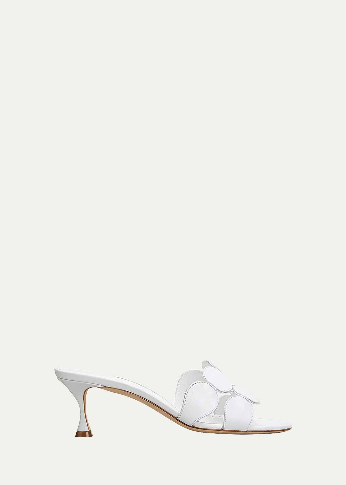 Manolo Blahnik HARIBALMU LEATHER SLIDE MULES, WHITE