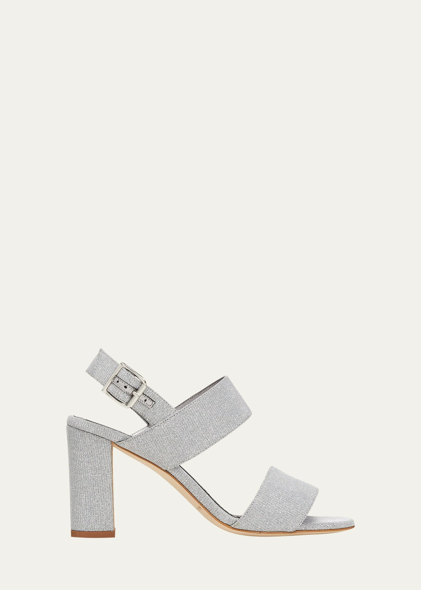 Manolo Blahnik KHAN METALLIC TWO BAND SLINGBACK SANDALS