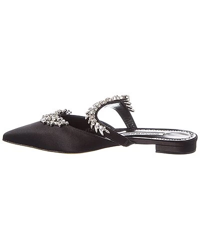 - Lurum Satin Flat in black satin and silver-tone hardware with crystal embellishments