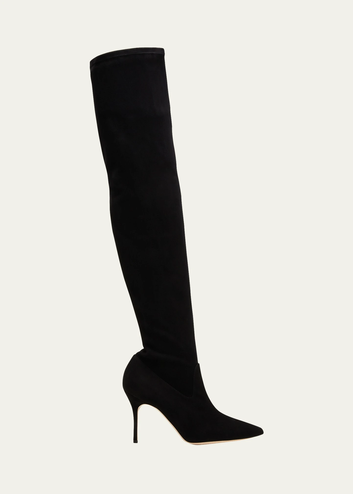 Manolo Blahnik PASCHALARI SUEDE OVER-THE-KNEE BOOTS