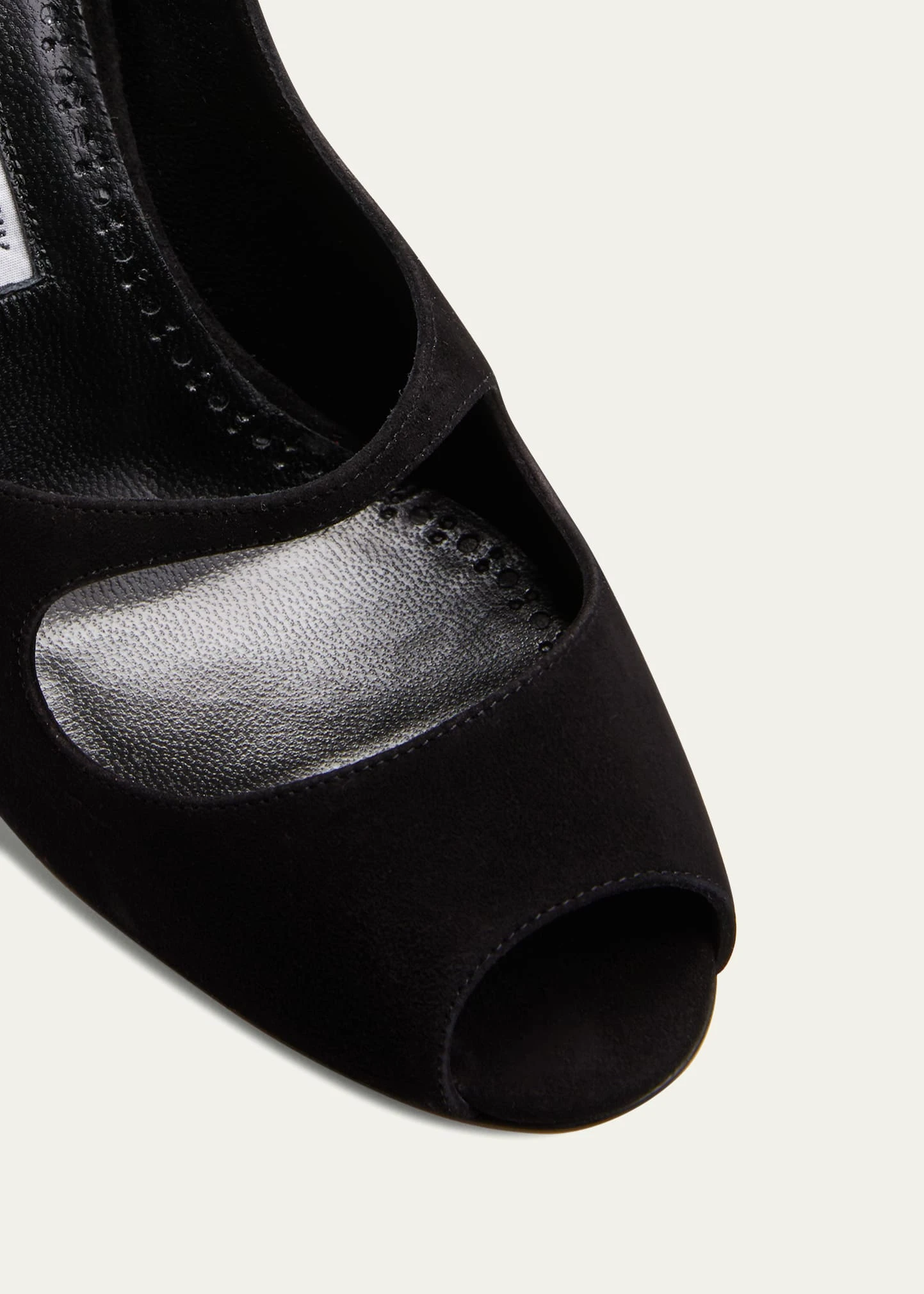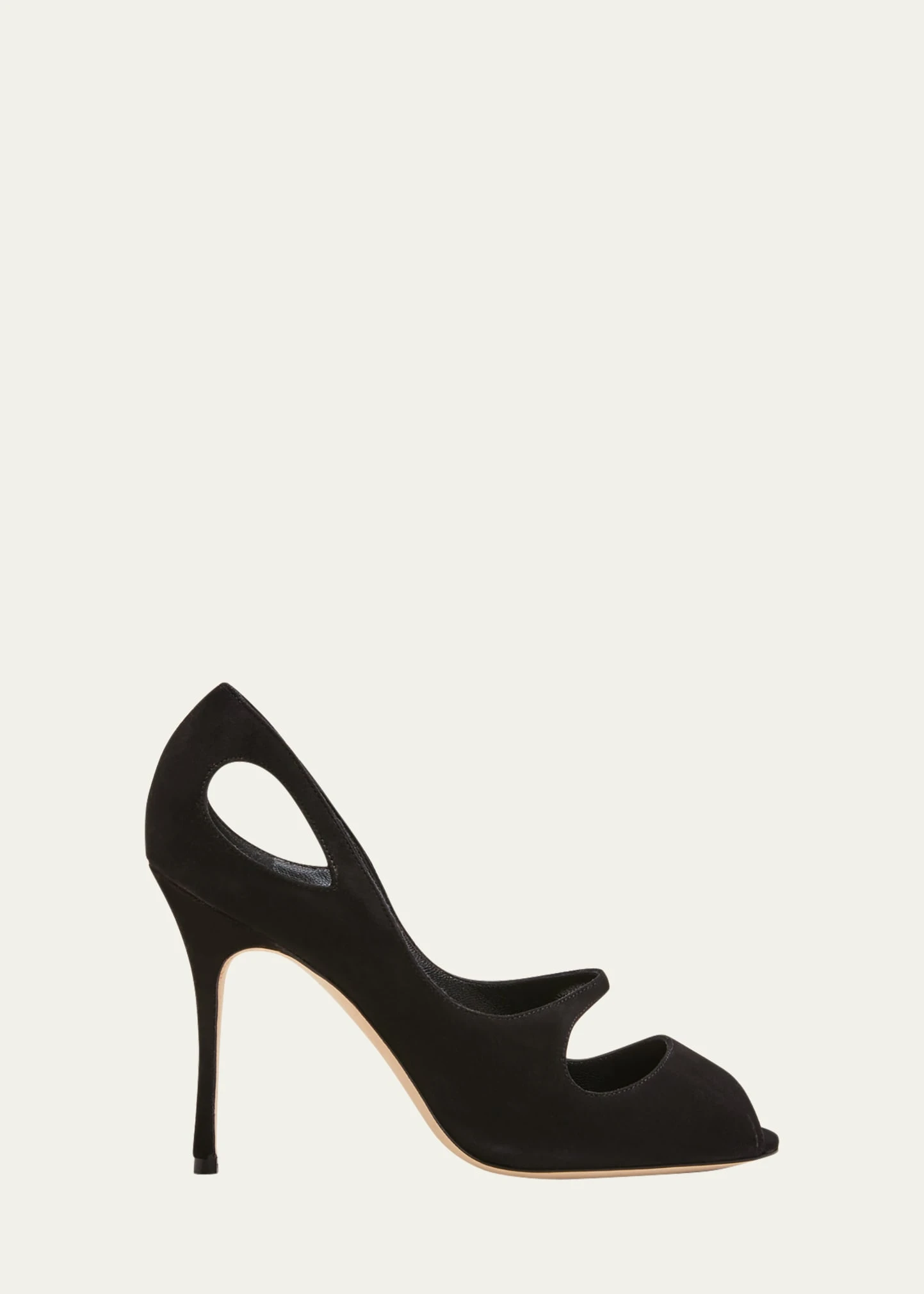 Manolo Blahnik TOKAN SUEDE CUTOUT PEEP-TOE PUMPS