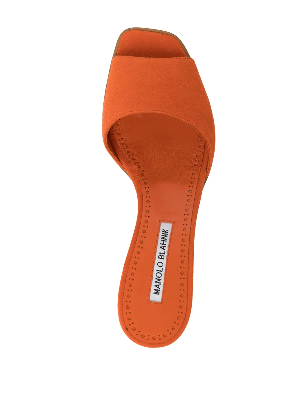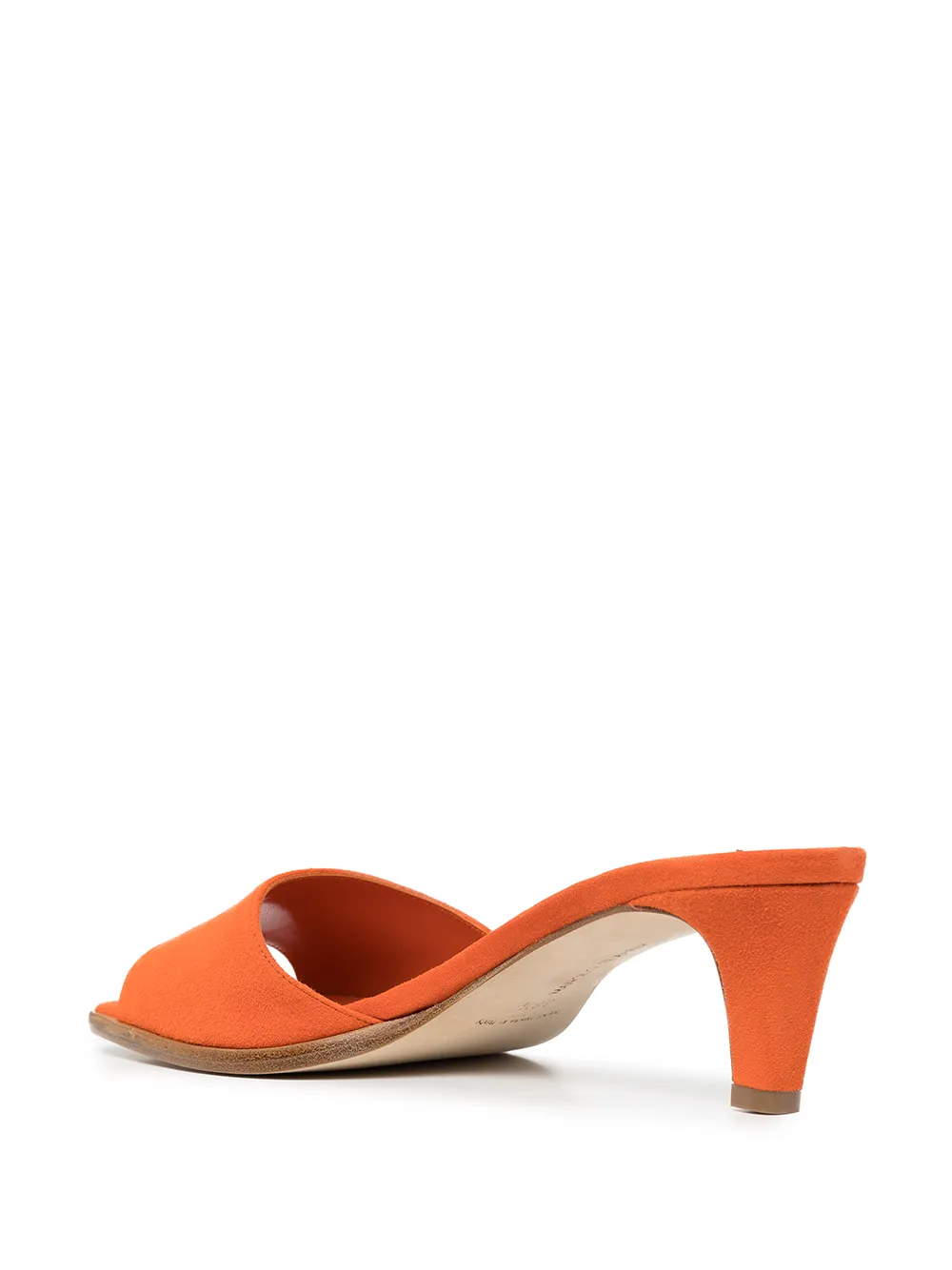 Arape 60mm mules from MANOLO BLAHNIK featuring carrot orange, suede, open toe, branded leather insole and kitten heel.