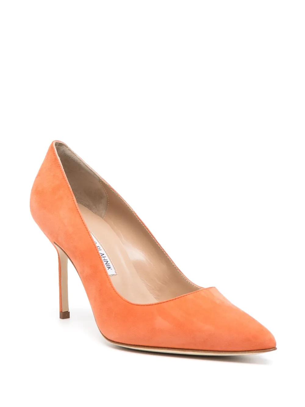 Crafted in Italy from soft suede, these bright orange BB pumps from Manolo Blahnik are free for embellishments, reflecting the brand’s refined aesthetic. They’re grounded on a sleek 90mm stiletto heel and boast a pointed toe silhouette.