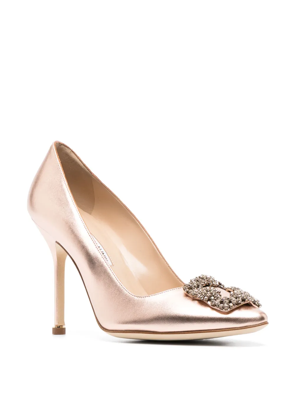 Manolo Blahnik is known for presenting elegant footwear and accessories. The Hangisi pumps – an iconic shoe from the Spanish designer’s collection – are presented in a pink leather construction for its AW23 collection. The recognisable Swarovski crystal embellished buckle at the upper makes this pair an instantly recognisable piece.