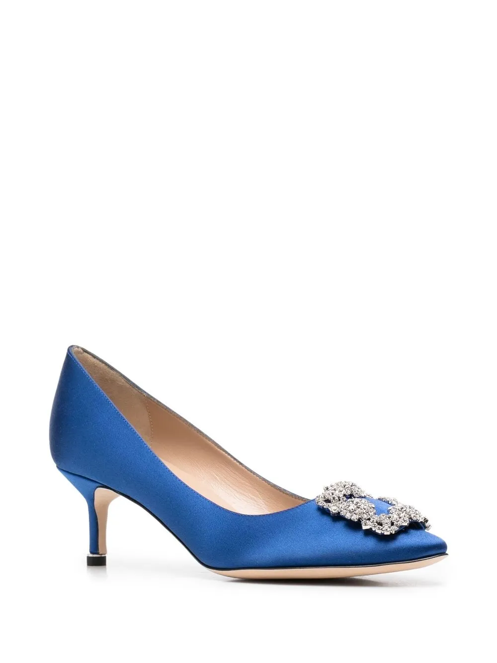 Nobody does a stiletto heel quite like Manolo Blahnik, one of the world’s most influential designers and leader in luxury footwear. Carefully constructed from lustrous blue silk satin, these Hangisi jewel buckle pumps can fit seamlessly into any formal occasion.