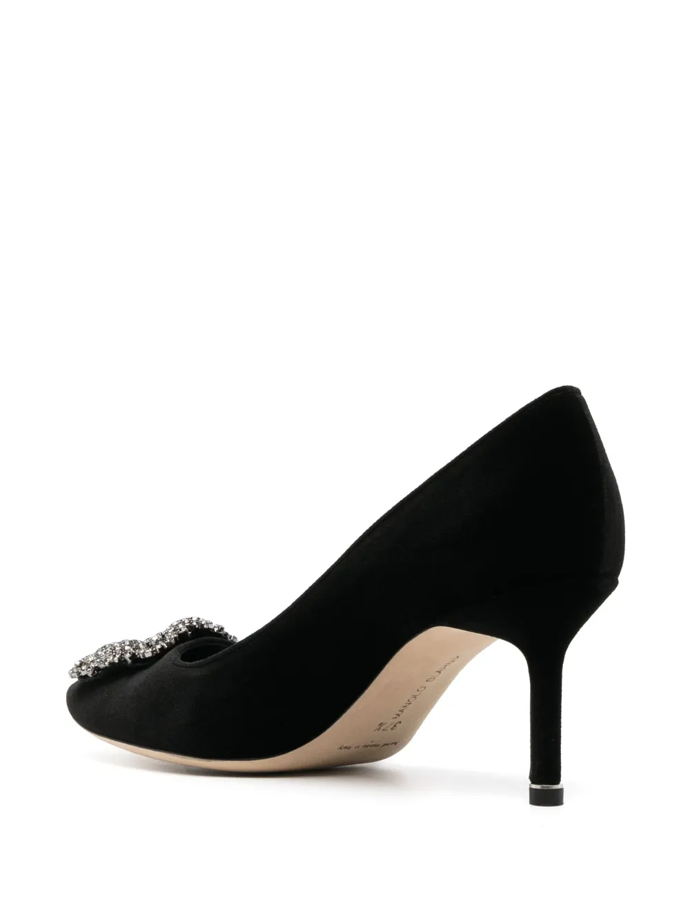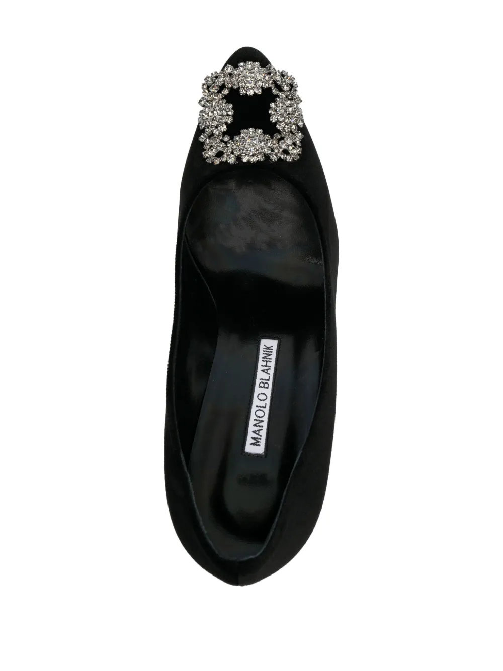 Manolo Blahnik is the definition of elegance. An iconic model, the Hangisi pumps are inspired by Napoleon I, Josephine and Pauline Bonaparte and feature the signature crystal-embellished buckle found in Italy, reported the designer. Exquisitely lined with leather and finished with velvet, they feature a pointed toe atop a mid-stiletto heel.