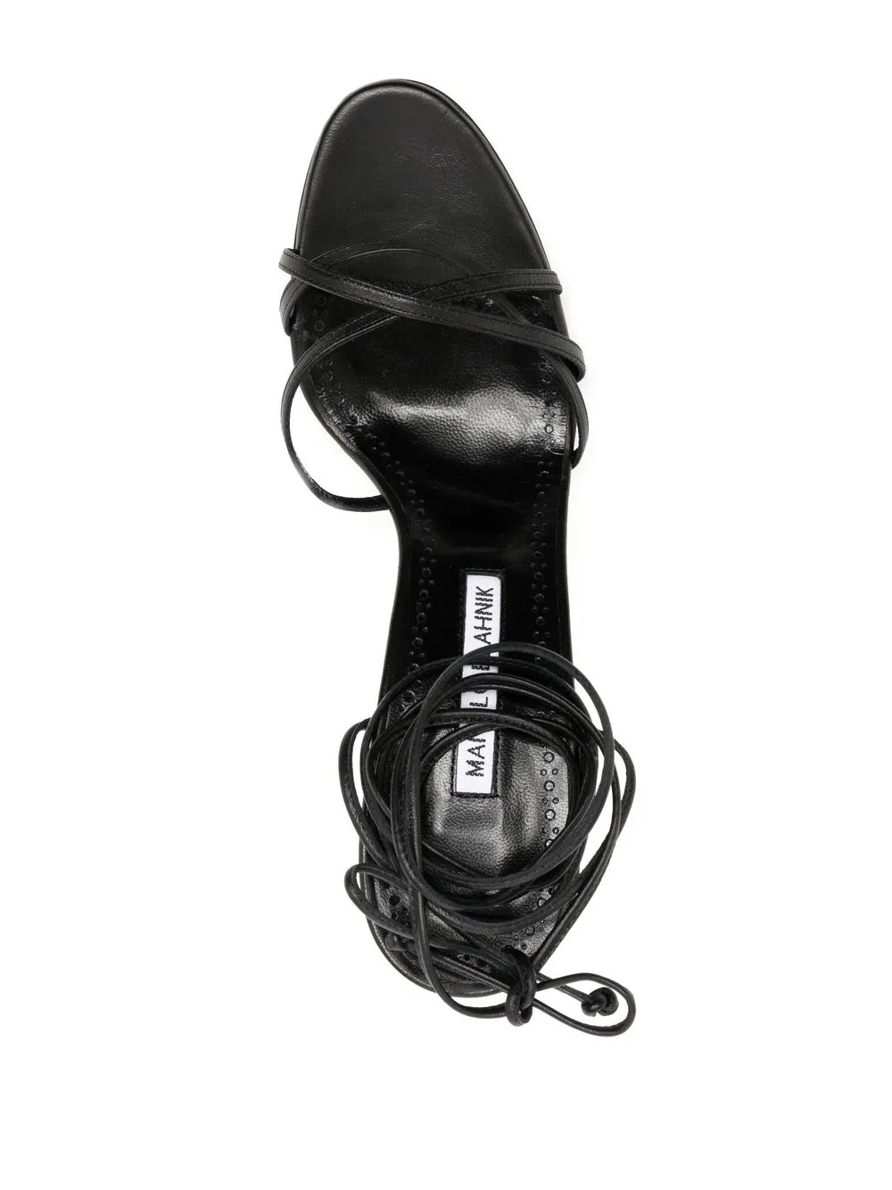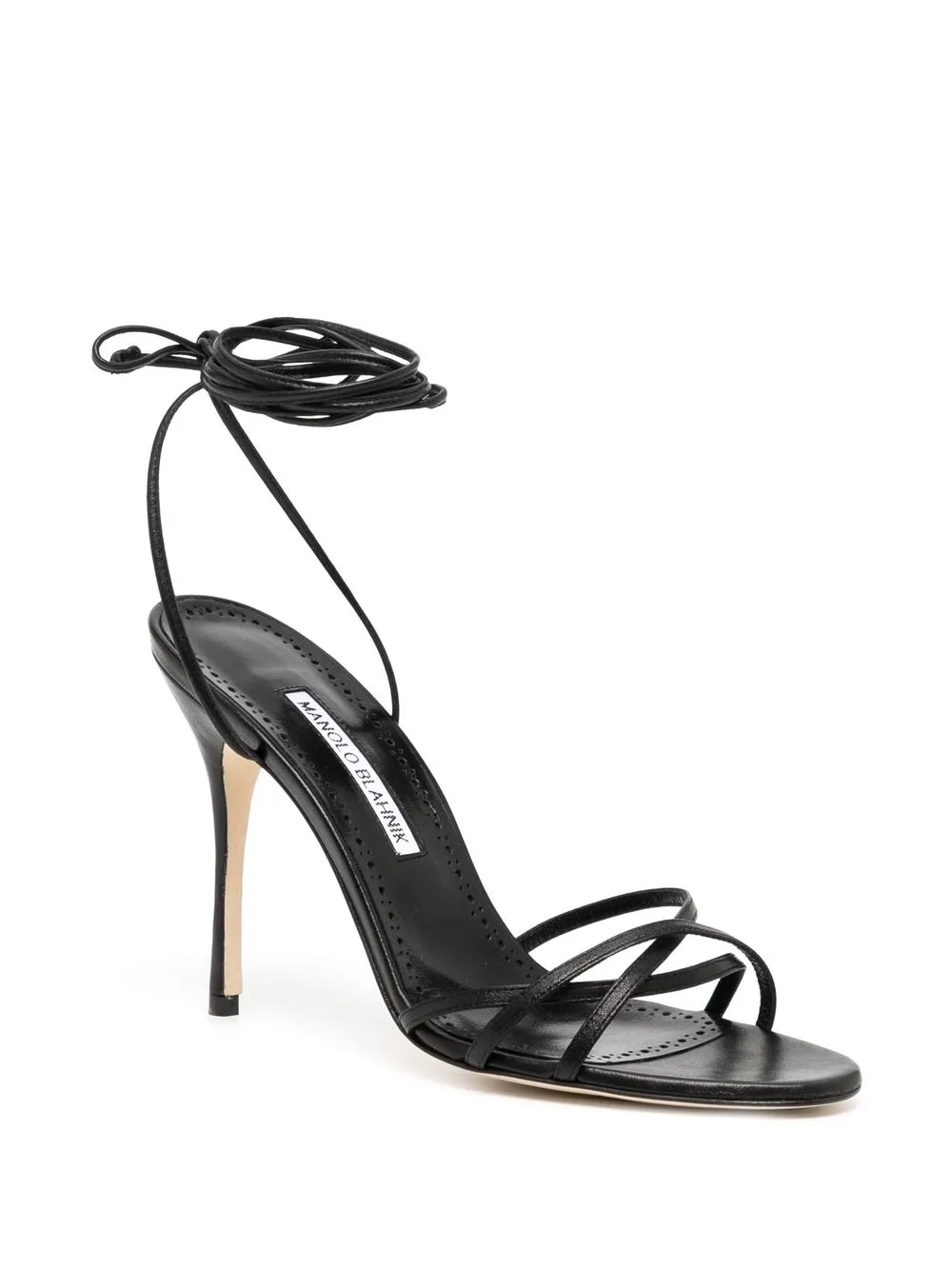 Manolo Blahnik presents these sleek strappy sandals for SS23 in a timeless black hue. The pair sits atop an elegant 105mm stiletto heel.