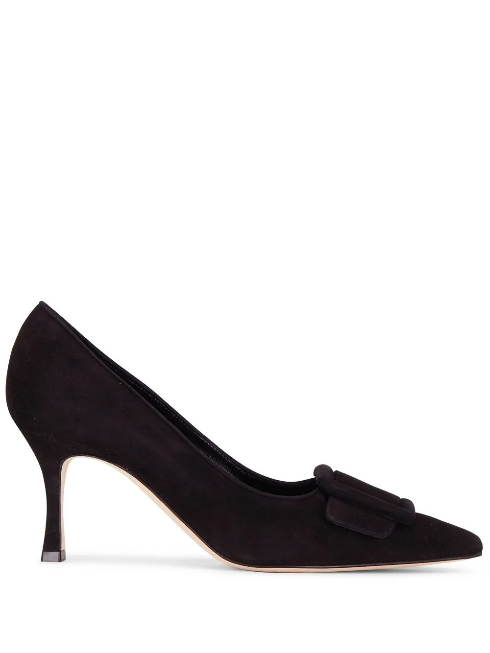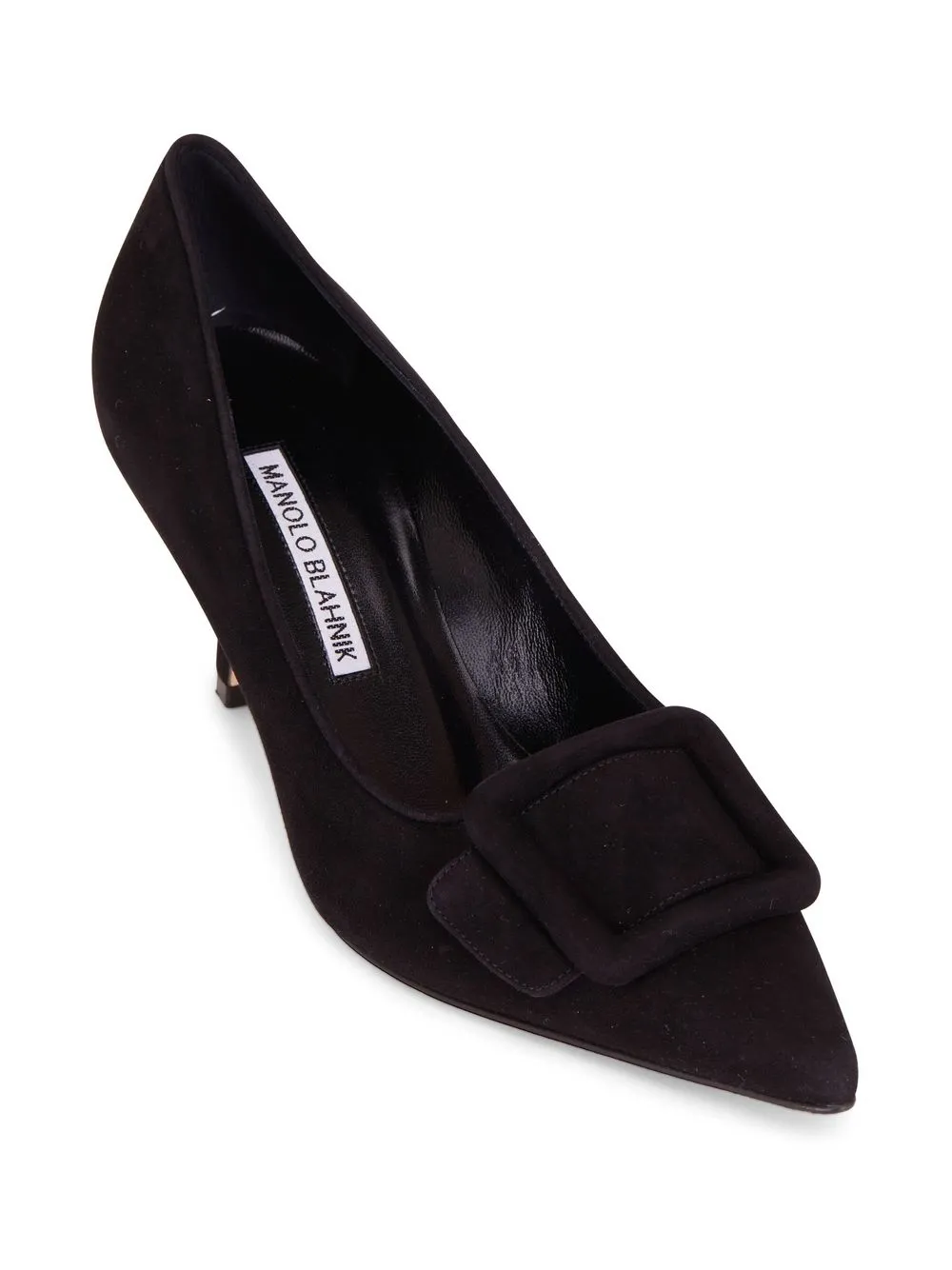 May buckle-detail 70mm pumps from MANOLO BLAHNIK featuring decorative buckle detailing, jet black, suede/leather, pointed toe, branded insole and 70mm high heel.
