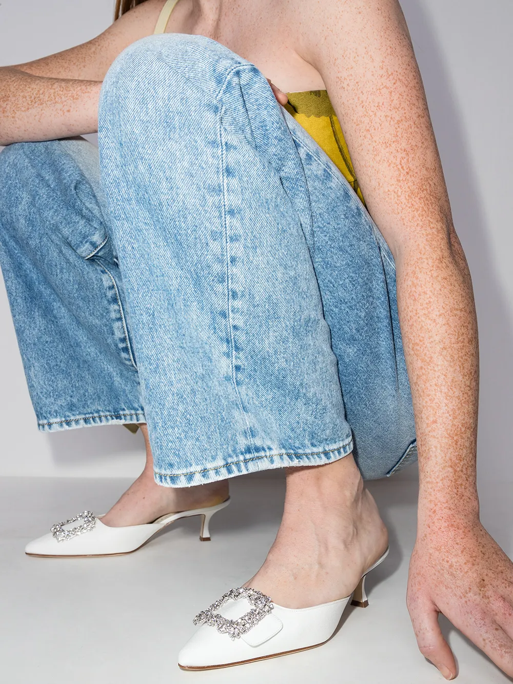 Maysale 50mm crystal-buckle mules