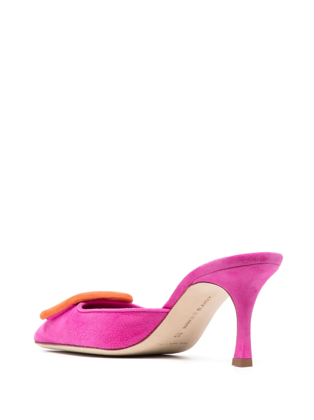 Manolo Blahnik’s Maysale pumps are easily recognisable thanks to their oversized buckle detail over the pointed toe. Keeping the classic tonal design, this pair arrives in pink suede.