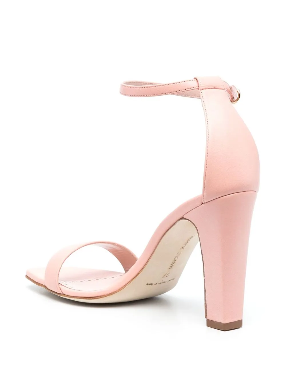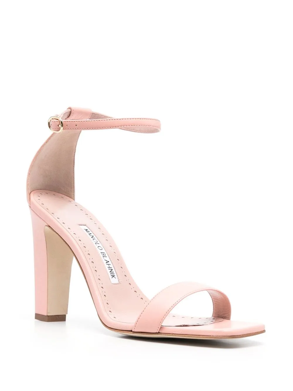 Ressata 100mm leather sandals from MANOLO BLAHNIK featuring pink, calf leather, strap detailing, open toe, buckle-fastening ankle strap, branded leather insole and high block heel.