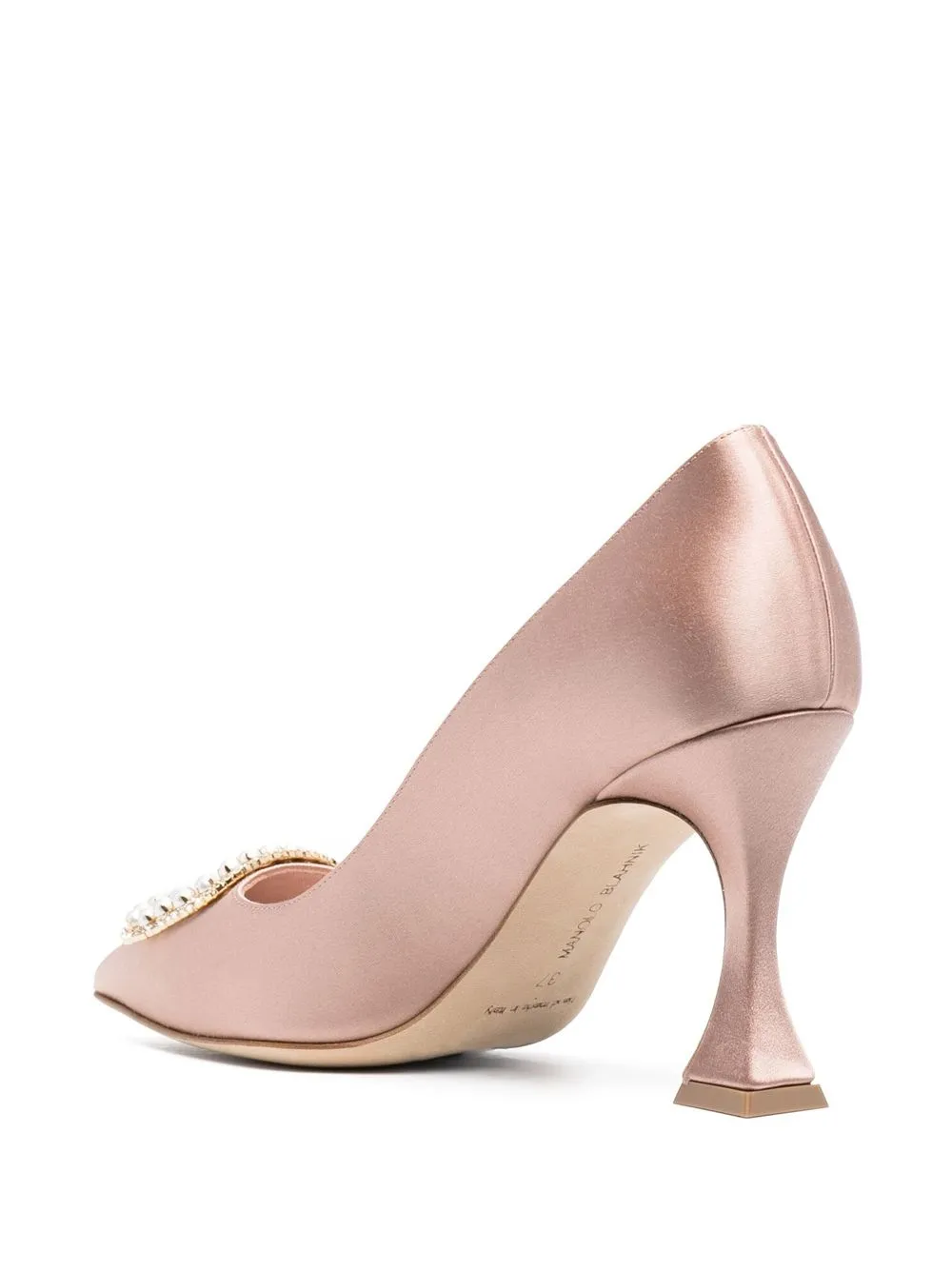 Rone 90mm pumps from MANOLO BLAHNIK featuring blush pink, calf leather, crystal embellishment, branded insole, pointed toe and mid heel.