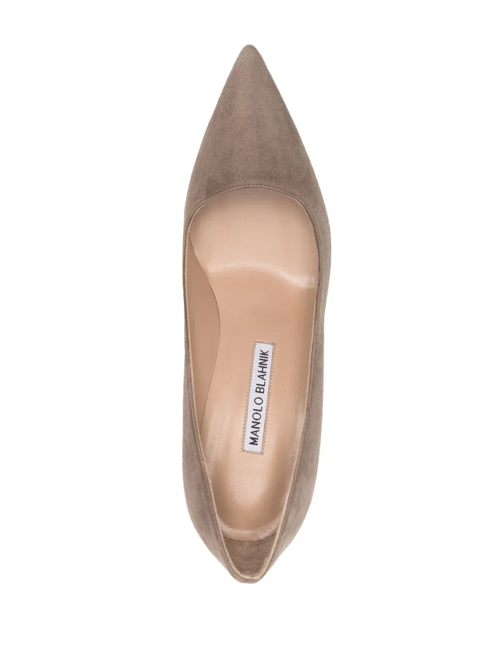 suede pointed toe pumps from MANOLO BLAHNIK featuring sesame beige, calf suede, calf leather, pointed toe, branded insole, stiletto heel and 70 mm.