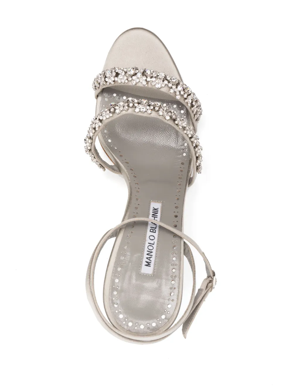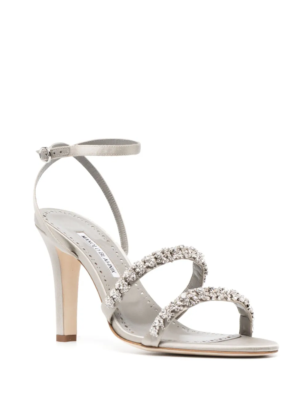 Manolo Blahnik’s refined elegance is encapsulated in these Vadada sandals. Crafted in Italy from calf leather and satin, they’re wrapped between crystal-embellished straps, atop a 105mm heel.
